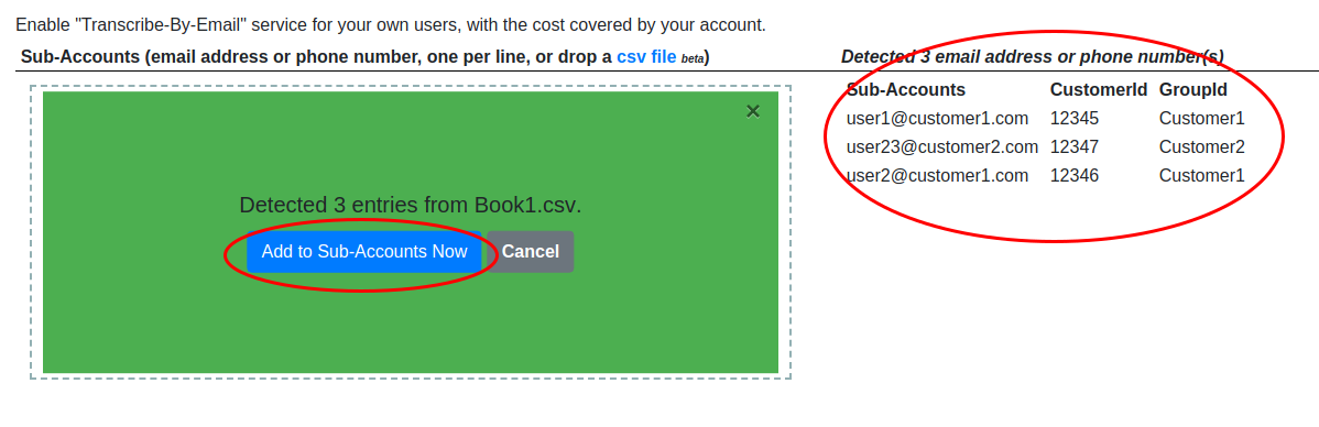 Easy Drag-Drop: Simply drag-drop your CSV file to Sub-Accounts page.